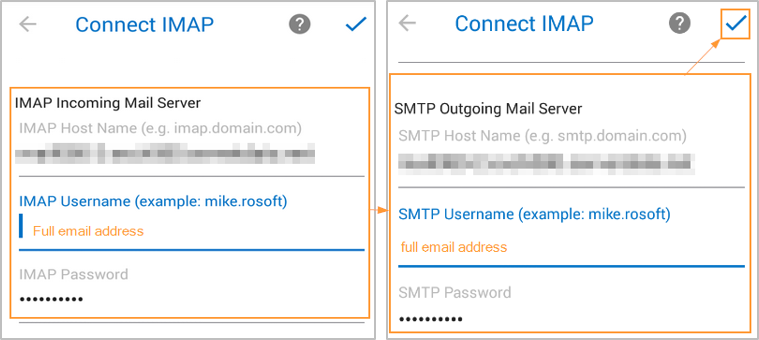 To specify server settings manually, click Advanced settings. After filling in all the fields, tap Check.